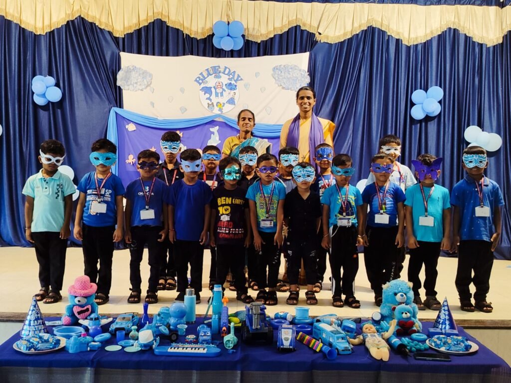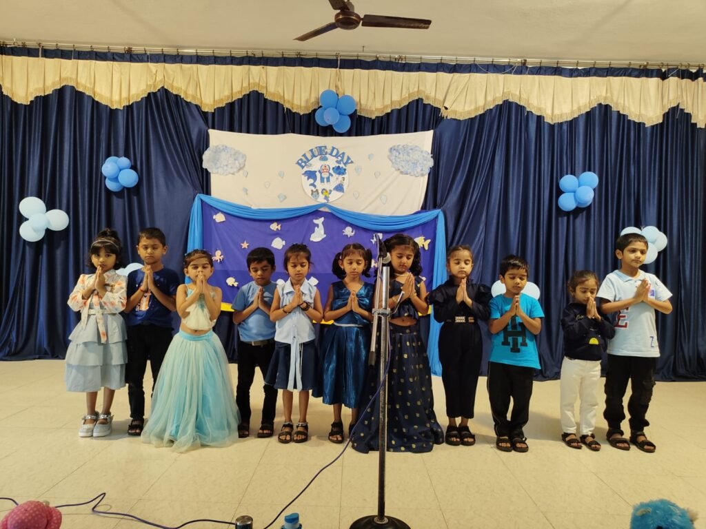The celebration concluded with the children joyfully dancing and expressing their happiness. Blue Day not only made learning effective and engaging but also created a sense of curiosity and excitement among the students.